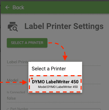 Then once the printer selection panel oppens simply select the installed label printer you wish to use and save your changes.